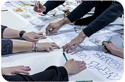 En 25 minutes, les participants décompressent et prennent du recul sur la Fresque en l’illustrant, la rendant unique. Les participants doivent rendre leur Fresque la plus attrayante, originale et compréhensive possible. Ils doivent choisir ensemble un titre, mettre en valeur les messages clés, rajouter des illustrations… Cette phase de créativité permet de s’approprier les connaissances.